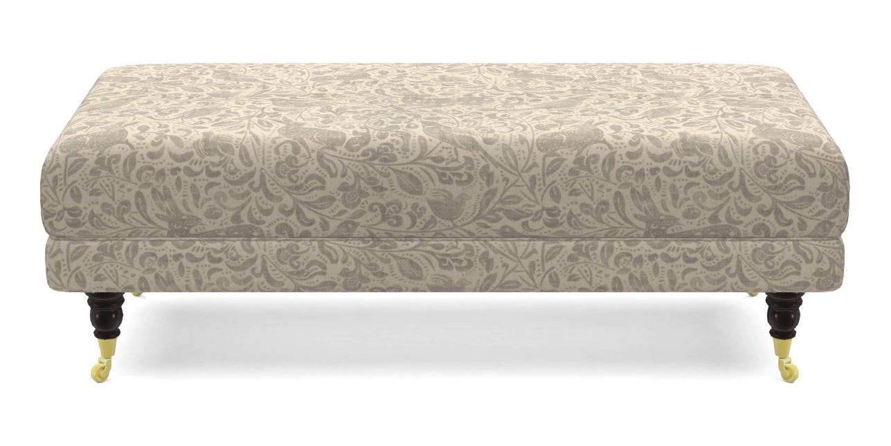 Alwinton Bespoke Large Footstools in V&A Drawn From Nature - Bird and Rabbit : Grey