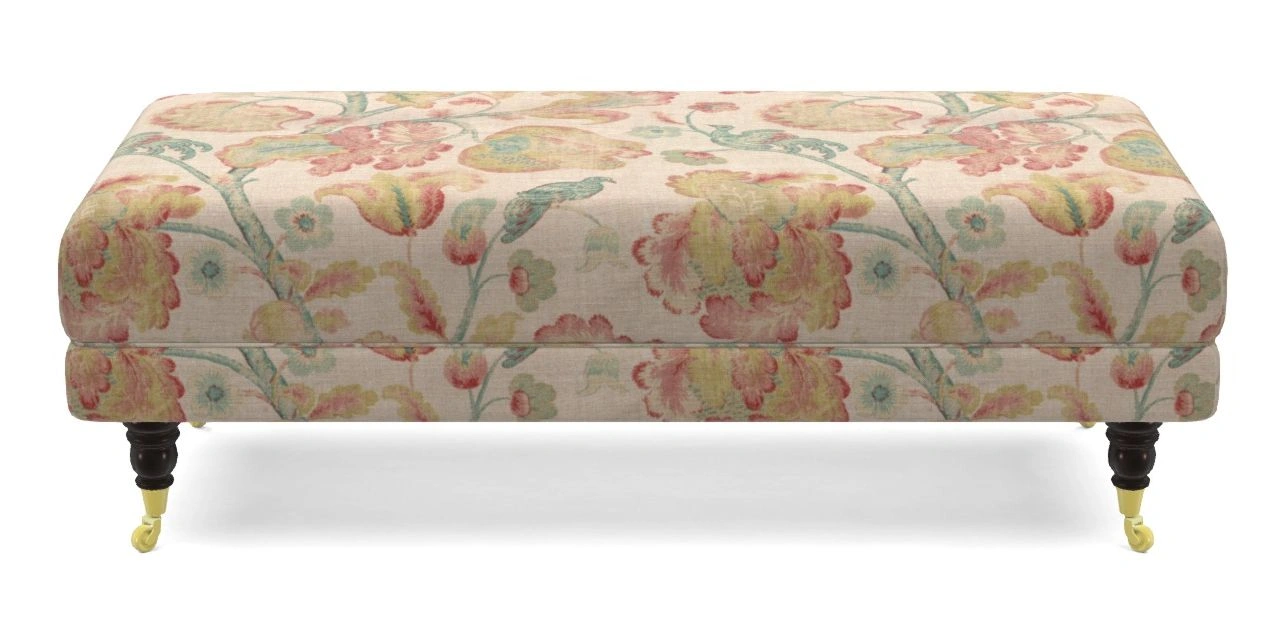 Alwinton Bespoke Large Footstools in Floral Linen : L Oiseaux Dusk