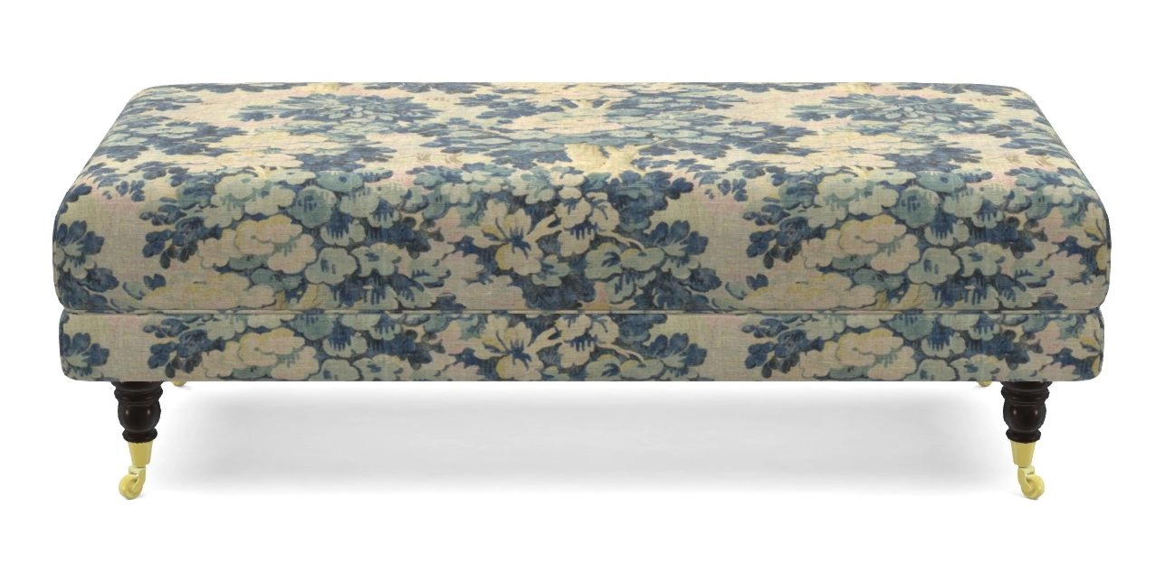 Alwinton Bespoke Large Footstools in Floral Linen : Sylvan Midnight