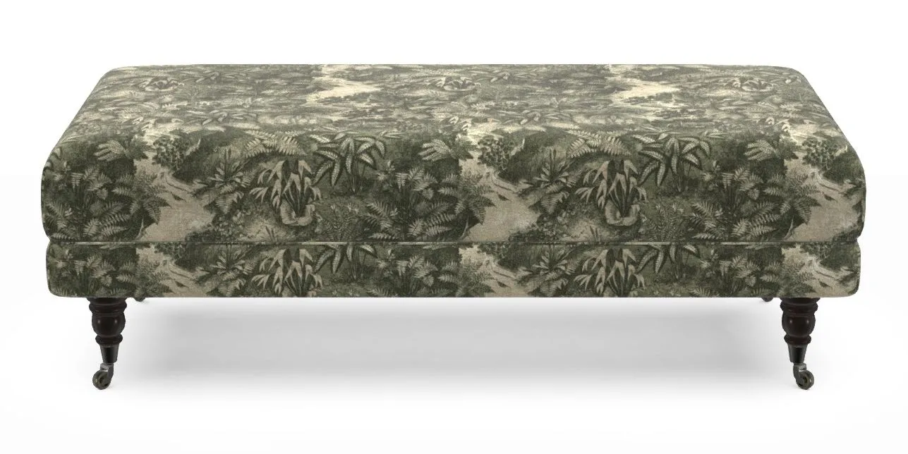 Alwinton Bespoke Large Footstools in RHS Botanicals on Velvet - Ferns Toile : RHS Botanicals on Velvet - Ferns Toile Forest