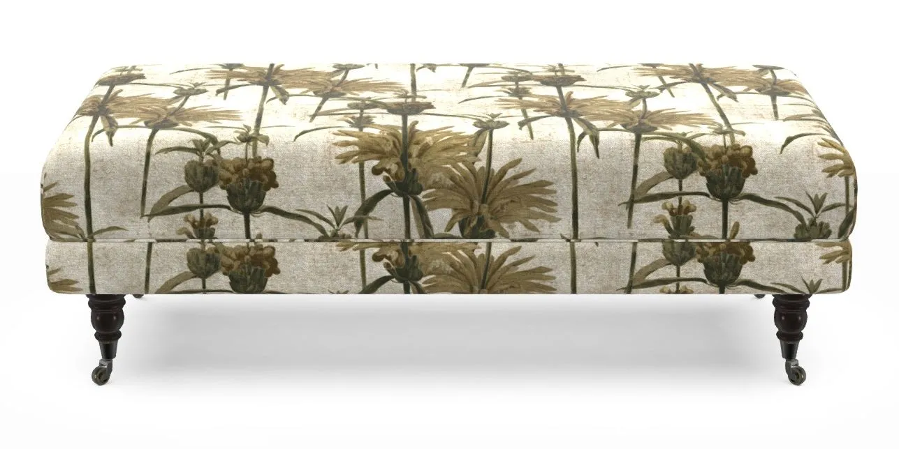 • Alwinton Bespoke Large Footstools in RHS Botanicals on Velvet - Henry Moon Lion's Tail : Sandstone