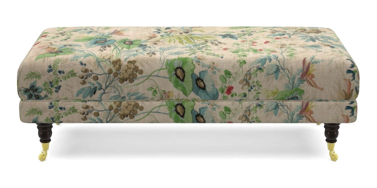 Alwinton Bespoke Large Footstools in Jungle Jaded Linen : Natural