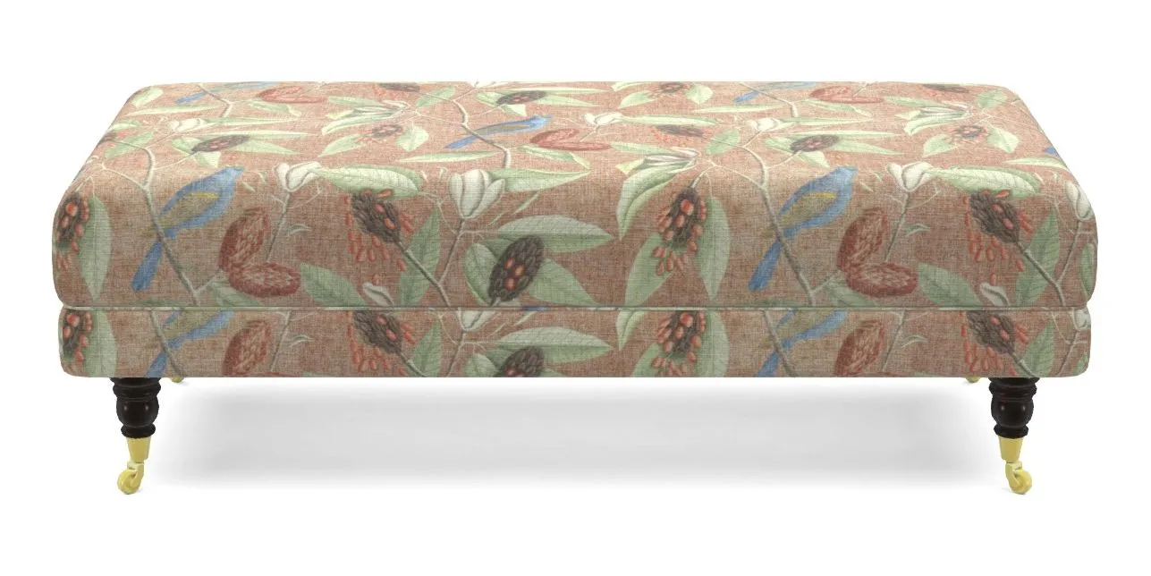 • Alwinton Bespoke Large Footstools in RHS Botanicals - Mark Catesby Grosbeak : Terracotta