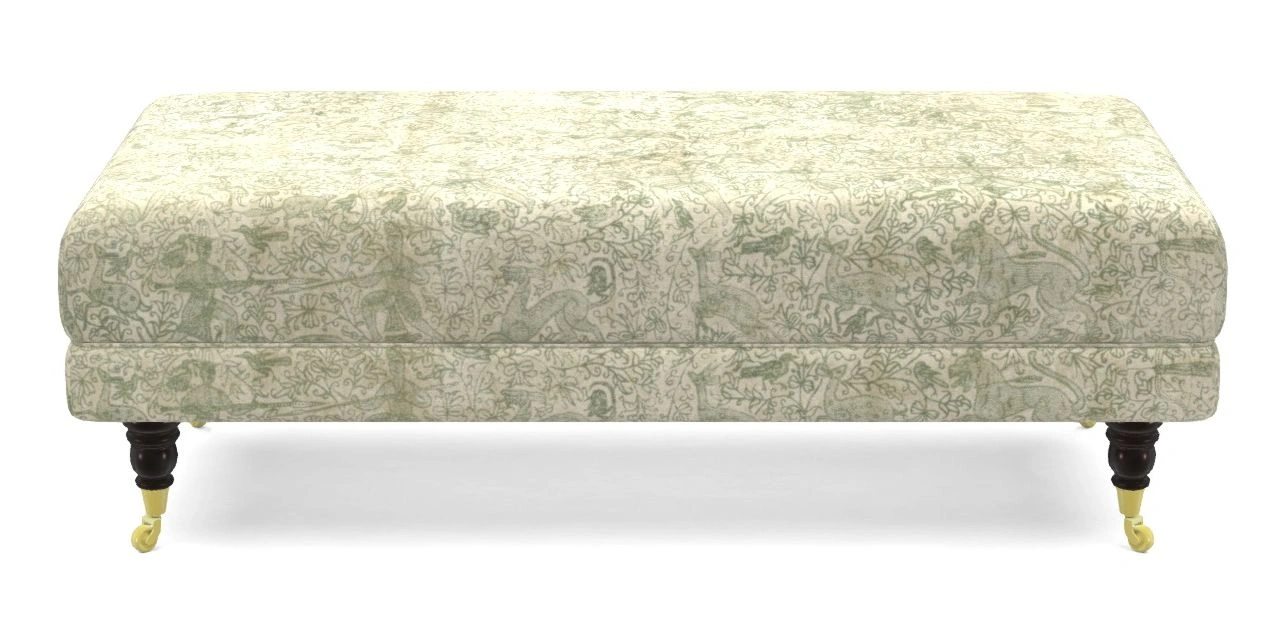 • Alwinton Bespoke Large Footstools in V&A Threads of India Opulent Velvets - Forest Creatures : V&A Threads of India Opulent Velvets - Forest Creatures Spring Green