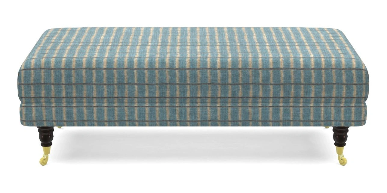 • Alwinton Bespoke Large Footstools in V&A Threads of India on Linen - Ikat Mirage : Mineral Blue