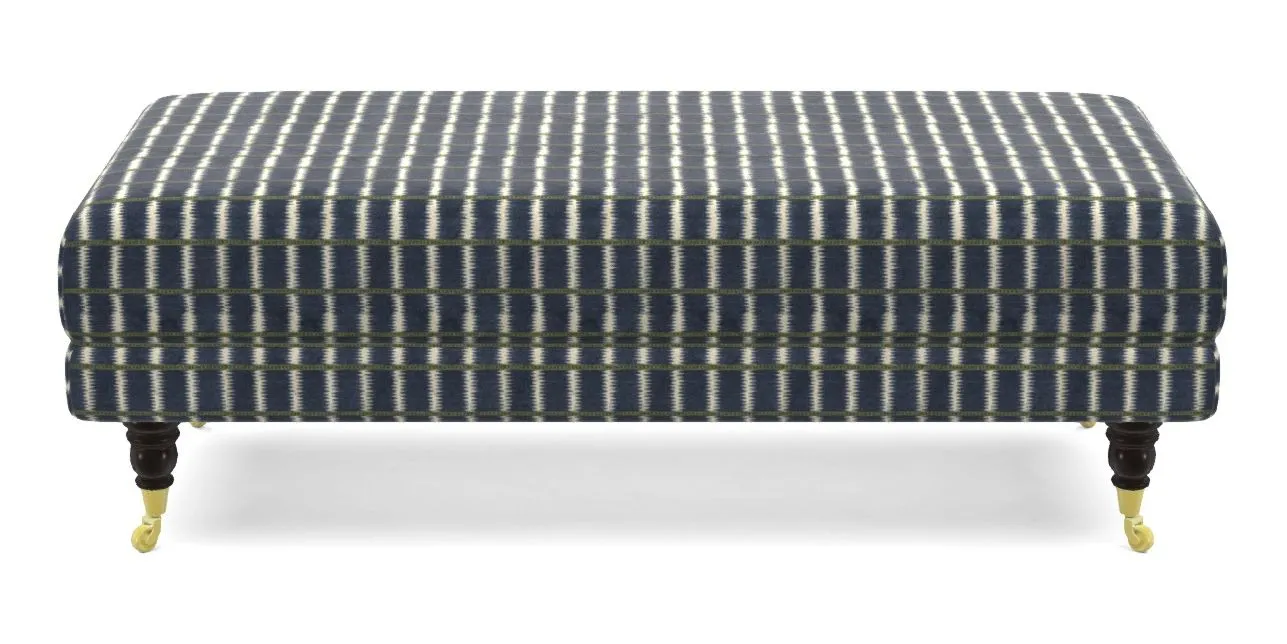 • Alwinton Bespoke Large Footstools in V&A Threads of India Opulent Velvets - Ikat Mirage : V&A Threads of India Opulent Velvets - Ikat Mirage Sapphire