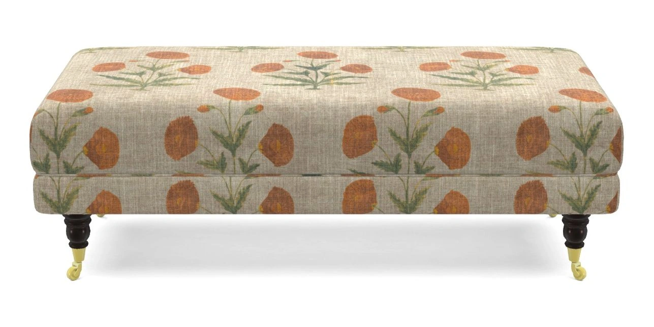 • Alwinton Bespoke Large Footstools in V&A Threads of India on Linen - Regal Poppy : Marigold