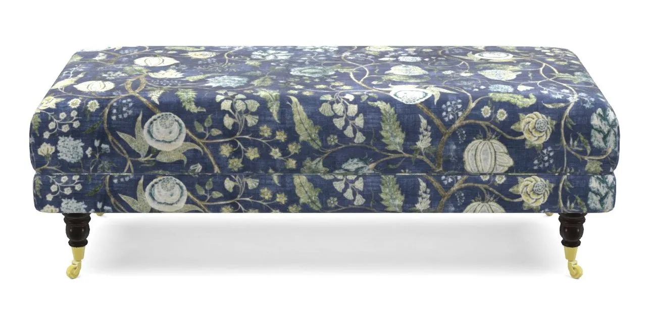 Alwinton Bespoke Large Footstools in V&A Threads of India Opulent Velvets - Tree of Life : Ink