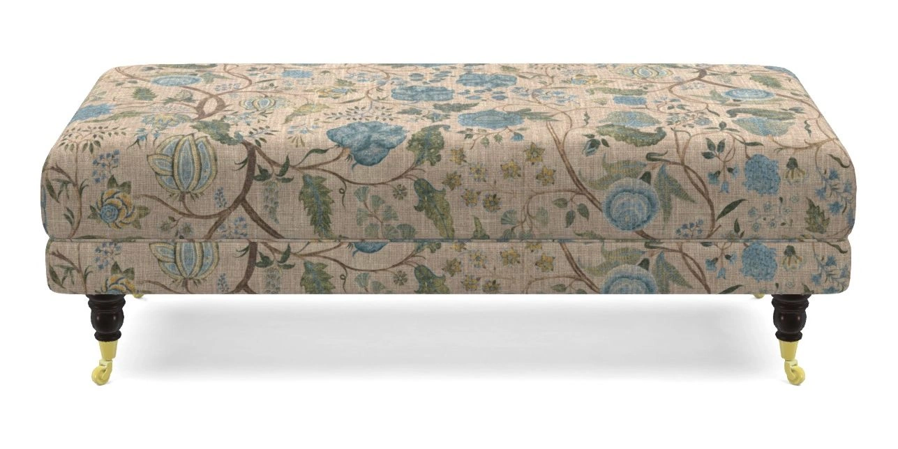 Alwinton Bespoke Large Footstools in V&A Threads of India on Linen - Tree of Life : V&A Threads of India on Linen - Tree of Life Chalk