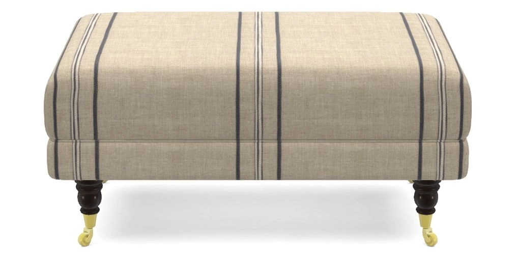 Alwinton Bespoke Small Footstools in Woven Linen Stripe - Askrigg : Askrigg Woven Linen Stripe Blue