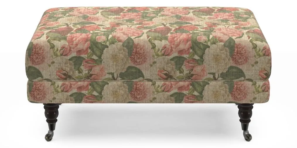 Alwinton Bespoke Small Footstools in RHS Etta's Bouquet All Over : RHS Etta's Bouquet All Over Sunset