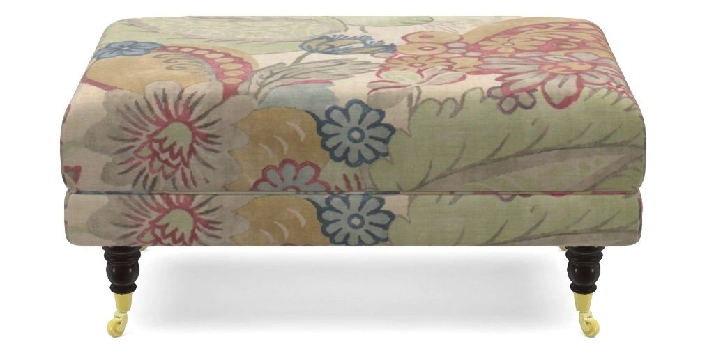 Alwinton Bespoke Small Footstools in Floral Linen : Carcassonne Laurel