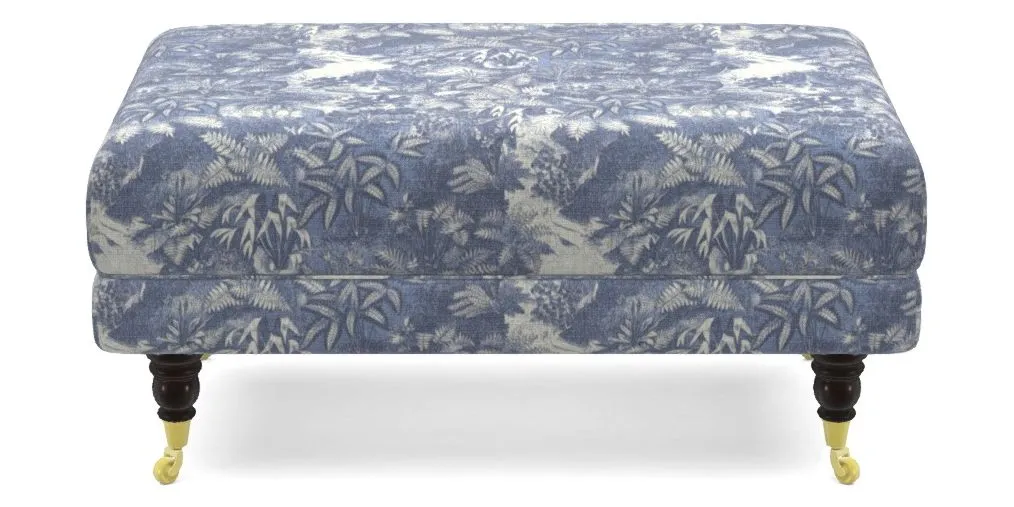 Alwinton Bespoke Small Footstools in RHS Botanicals - Ferns Toile : Indigo