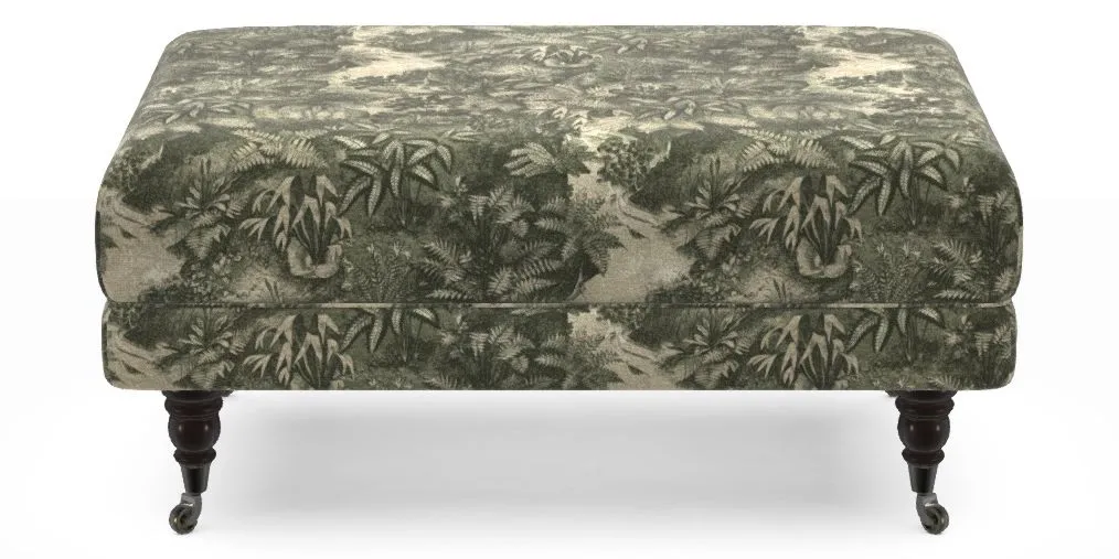 • Alwinton Bespoke Small Footstools in RHS Botanicals on Velvet - Ferns Toile : RHS Botanicals on Velvet - Ferns Toile Forest