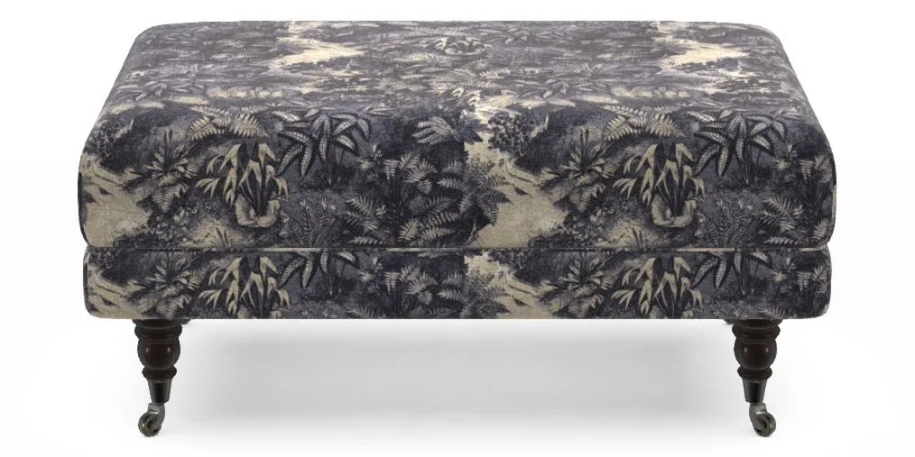 Alwinton Bespoke Small Footstools in RHS Botanicals on Velvet - Ferns Toile : RHS Botanicals on Velvet - Ferns Toile Ink