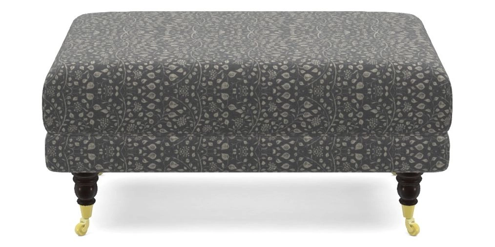 Alwinton Bespoke Small Footstools in RHS Collection - Gertrude Jekyll Small Trailing Vine : Navy