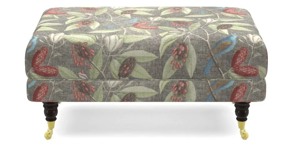 • Alwinton Bespoke Small Footstools in RHS Botanicals - Mark Catesby Grosbeak : Bark