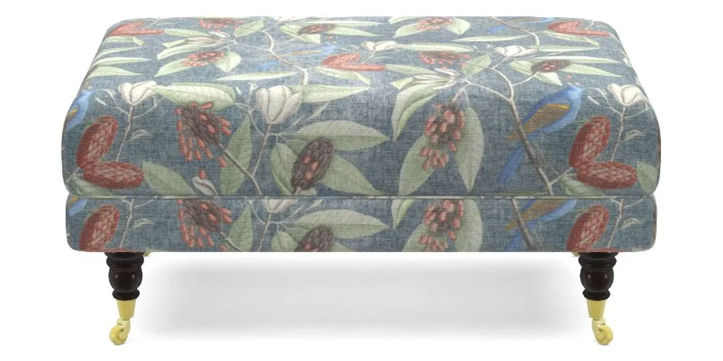Alwinton Bespoke Small Footstools in RHS Botanicals - Mark Catesby Grosbeak : Teal