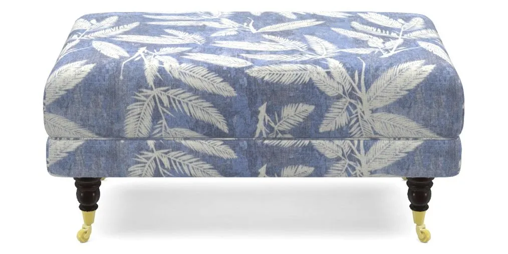 Alwinton Bespoke Small Footstools in RHS Botanicals - Palm Leaf : Indigo