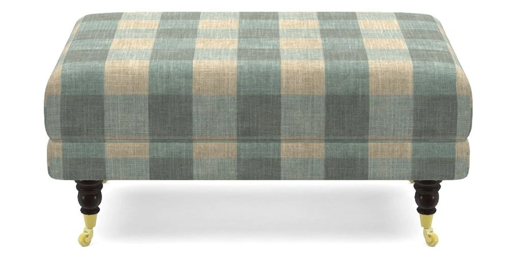 Alwinton Bespoke Small Footstools in Sussex Gingham Large : Sea Mist