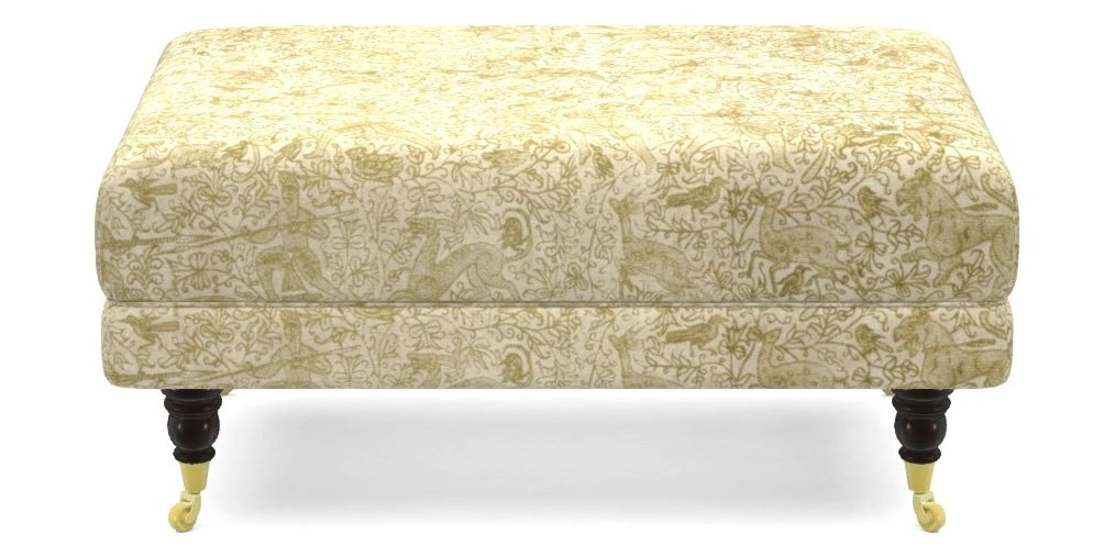 Alwinton Bespoke Small Footstools in V&A Threads of India Opulent Velvets - Forest Creatures : V&A Threads of India Opulent Velvets - Forest Creatures Gold