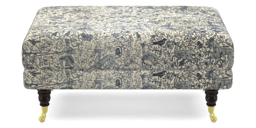 Alwinton Bespoke Small Footstools in V&A Threads of India Opulent Velvets - Forest Creatures : V&A Threads of India Opulent Velvets - Forest Creatures Ink