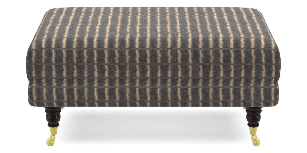• Alwinton Bespoke Small Footstools in V&A Threads of India on Linen - Ikat Mirage : Ebony