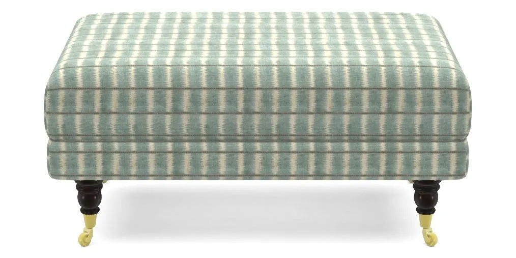 Alwinton Bespoke Small Footstools in V&A Threads of India Opulent Velvets - Ikat Mirage : V&A Threads of India Opulent Velvets - Ikat Mirage Sea Mist