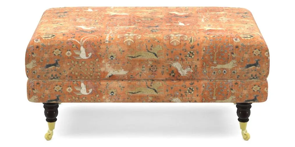 • Alwinton Bespoke Small Footstools in V&A Threads of India Opulent Velvets - Lahore Dynasty : V&A Threads of India Opulent Velvets - Lahore Dynasty Flame