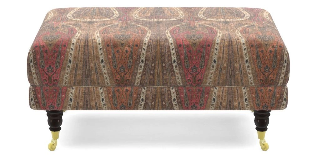 Alwinton Bespoke Small Footstools in V&A Threads of India on Linen - Paisley Splendour : Sandstone