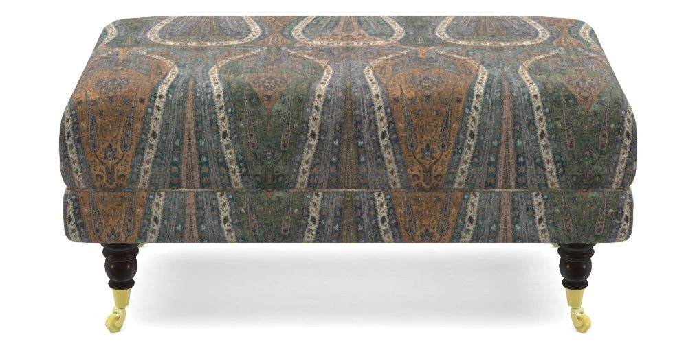 • Alwinton Bespoke Small Footstools in V&A Threads of India on Linen - Paisley Splendour : Steel