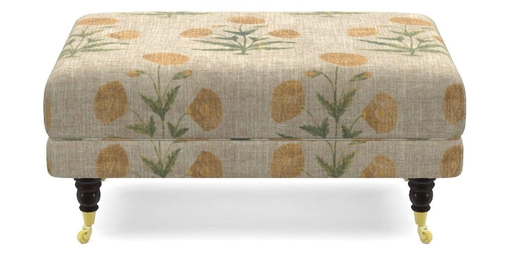 • Alwinton Bespoke Small Footstools in V&A Threads of India on Linen - Regal Poppy : Buttermilk
