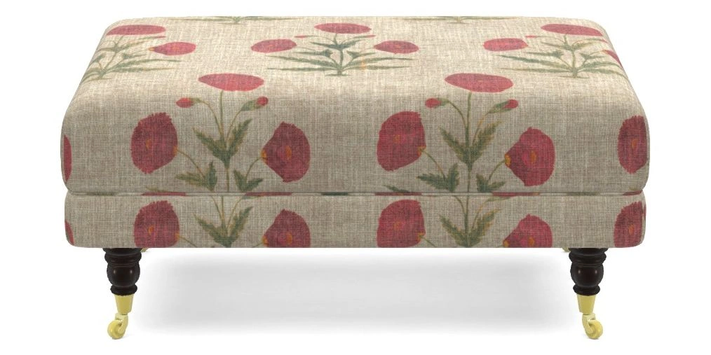 Alwinton Bespoke Small Footstools in V&A Threads of India on Linen - Regal Poppy : Cardinal