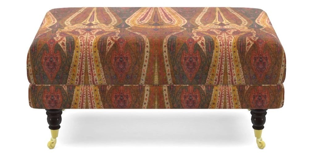 • Alwinton Bespoke Small Footstools in V&A Threads of India Opulent Velvets - Paisley Splendour : V&A Threads of India Opulent Velvets - Paisley Splendour Flame