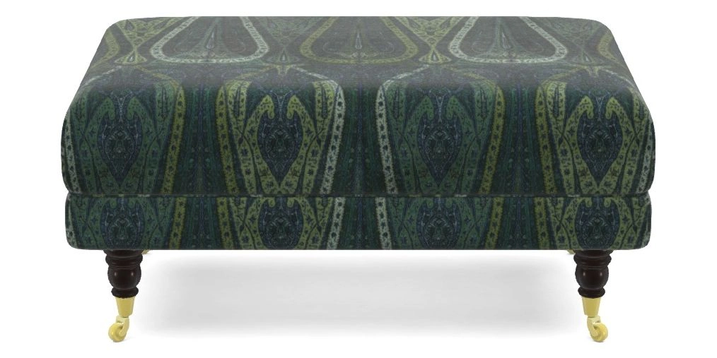 • Alwinton Bespoke Small Footstools in V&A Threads of India Opulent Velvets - Paisley Splendour : V&A Threads of India Opulent Velvets - Paisley Splendour Hunter