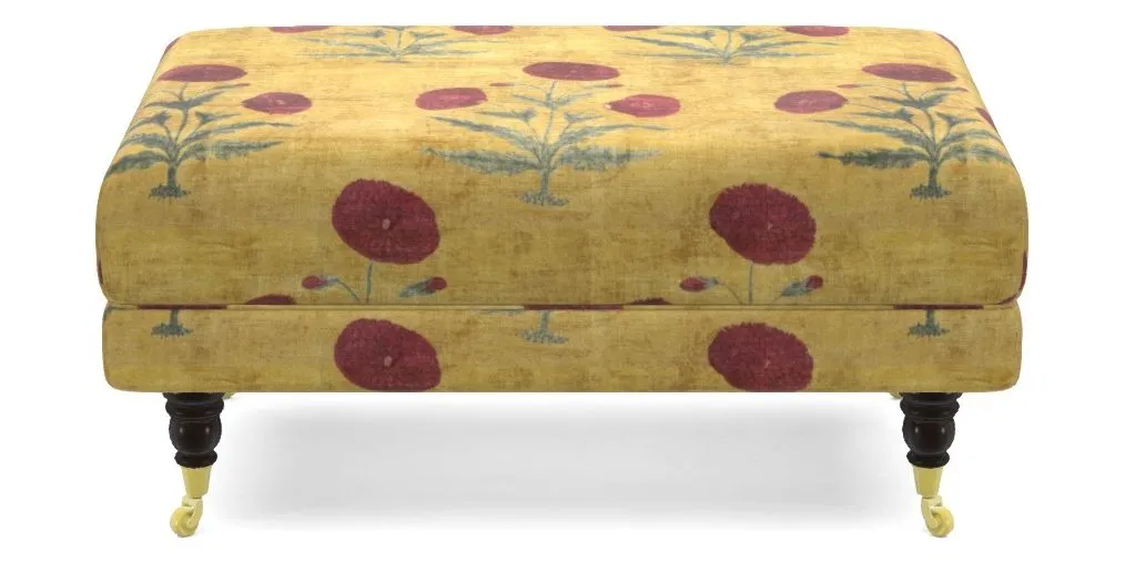 • Alwinton Bespoke Small Footstools in V&A Threads of India Opulent Velvets - Regal Poppy : V&A Threads of India Opulent Velvets - Regal Poppy Gold