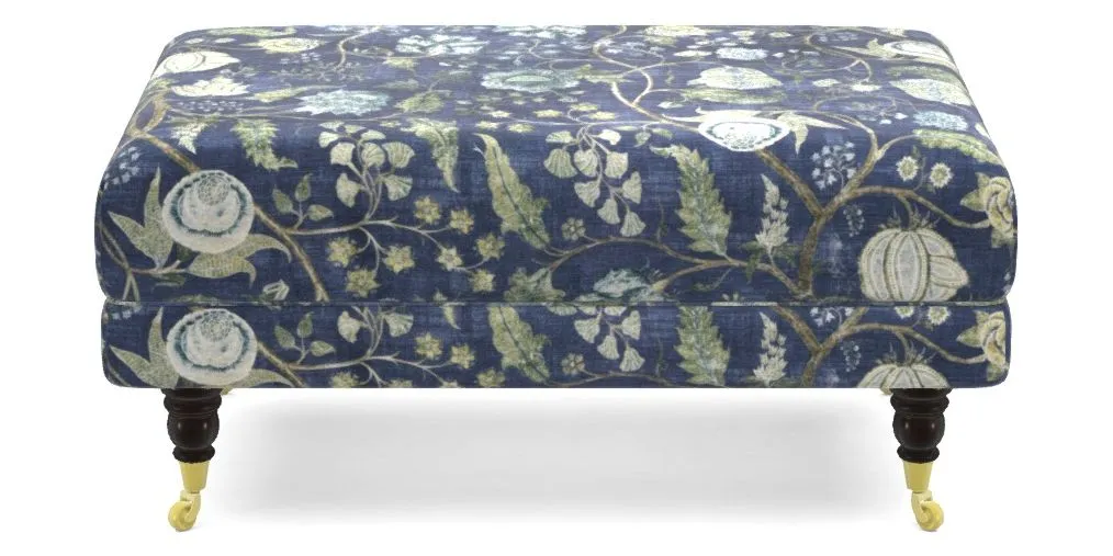 Alwinton Bespoke Small Footstools in V&A Threads of India Opulent Velvets - Tree of Life : Ink