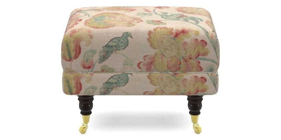 Alwinton Bespoke Extra Small Footstools in Floral Linen : L Oiseaux Dusk
