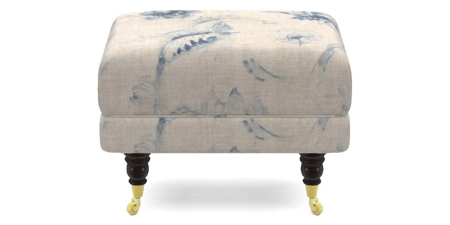 Alwinton Bespoke Extra Small Footstools in Floral Linen : Lela Mystery Indigo