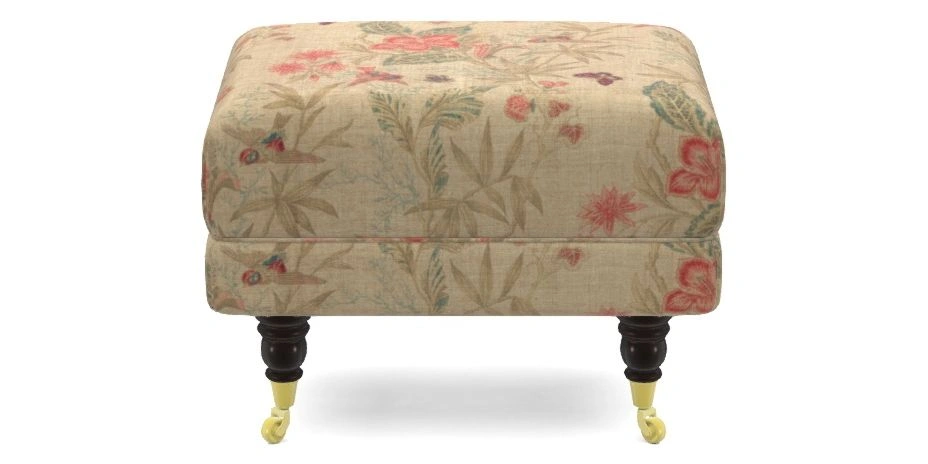 Alwinton Bespoke Extra Small Footstools in Floral Linen : Shangri-la Pebbles
