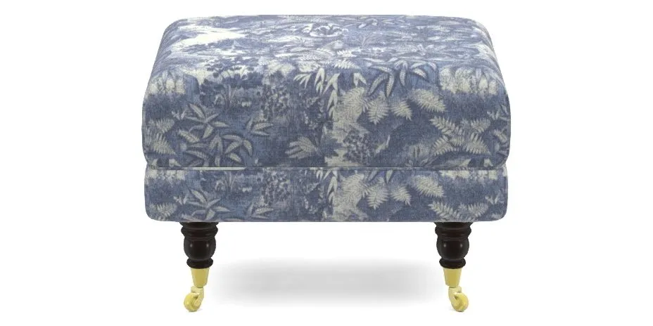 Alwinton Bespoke Extra Small Footstools in RHS Botanicals - Ferns Toile : Indigo