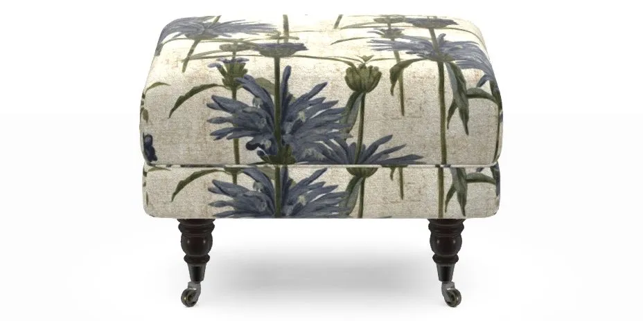 Alwinton Bespoke Extra Small Footstools in RHS Botanicals on Velvet - Henry Moon Lion's Tail : Cornflower