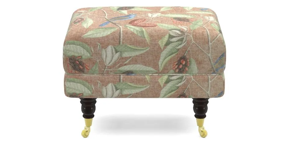 • Alwinton Bespoke Extra Small Footstools in RHS Botanicals - Mark Catesby Grosbeak : Terracotta