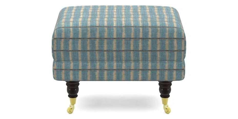 Alwinton Bespoke Extra Small Footstools in V&A Threads of India on Linen - Ikat Mirage : Mineral Blue