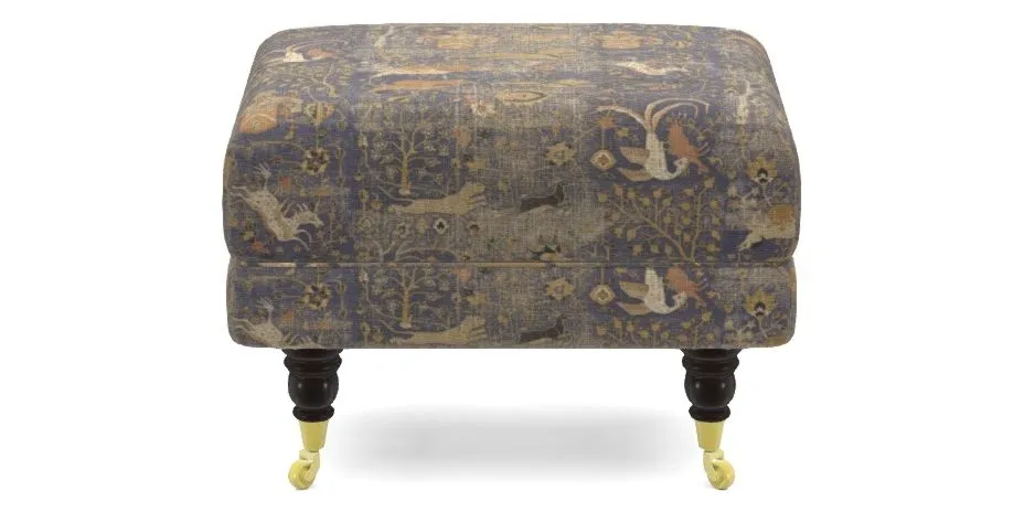 Alwinton Bespoke Extra Small Footstools in V&A Threads of India - Lahore Dynasty : Ink