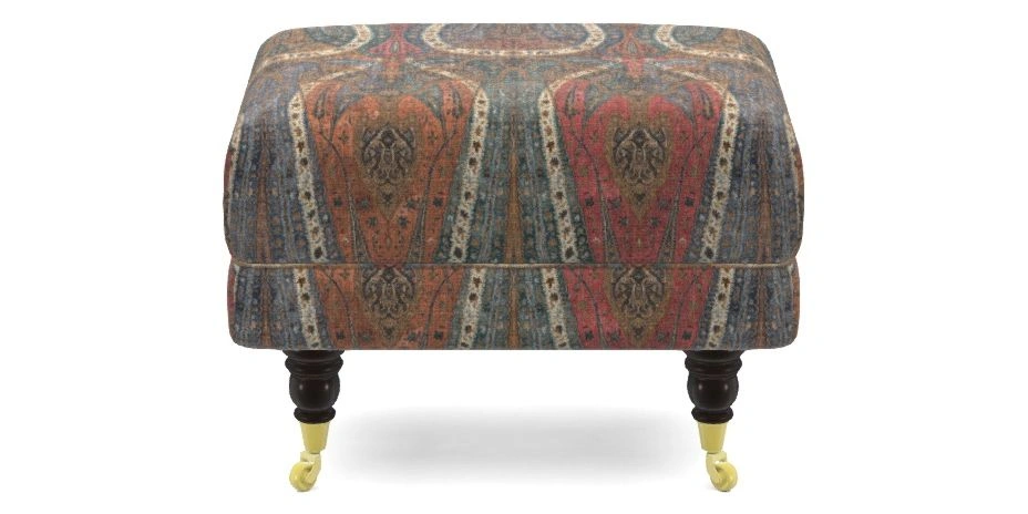 Alwinton Bespoke Extra Small Footstools in V&A Threads of India on Linen - Paisley Splendour : Dusk