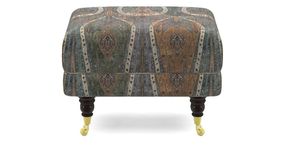• Alwinton Bespoke Extra Small Footstools in V&A Threads of India on Linen - Paisley Splendour : Steel