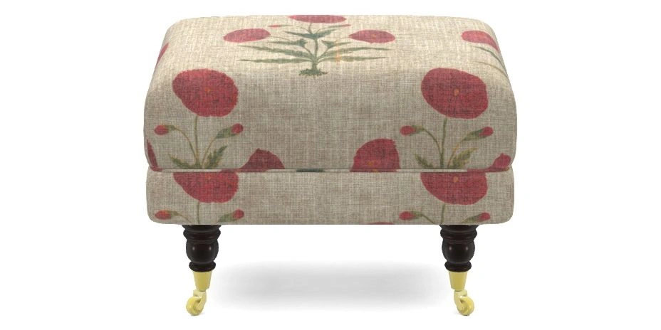 Alwinton Bespoke Extra Small Footstools in V&A Threads of India on Linen - Regal Poppy : Cardinal