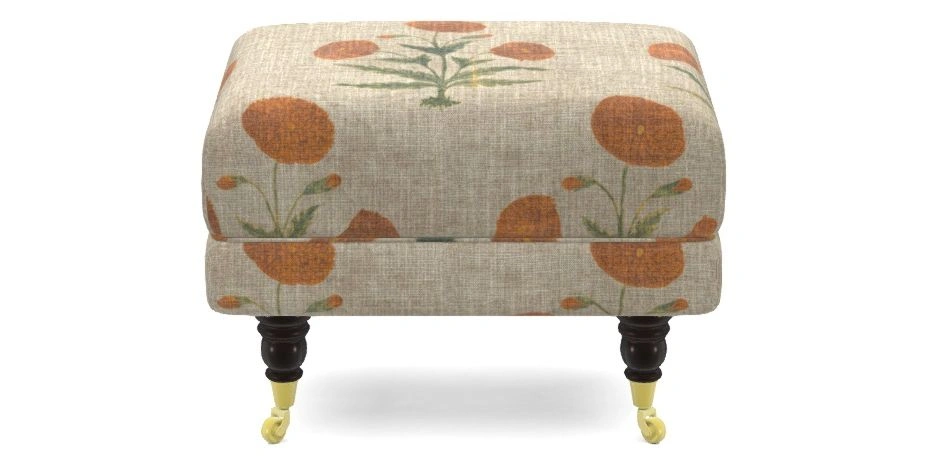 Alwinton Bespoke Extra Small Footstools in V&A Threads of India on Linen - Regal Poppy : Marigold