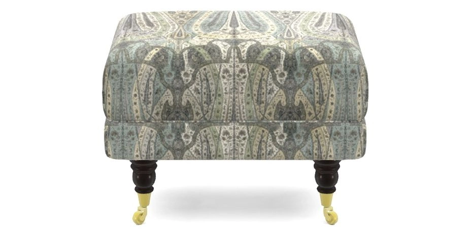 • Alwinton Bespoke Extra Small Footstools in V&A Threads of India Opulent Velvets - Paisley Splendour : V&A Threads of India Opulent Velvets - Paisley Splendour Powder Blue